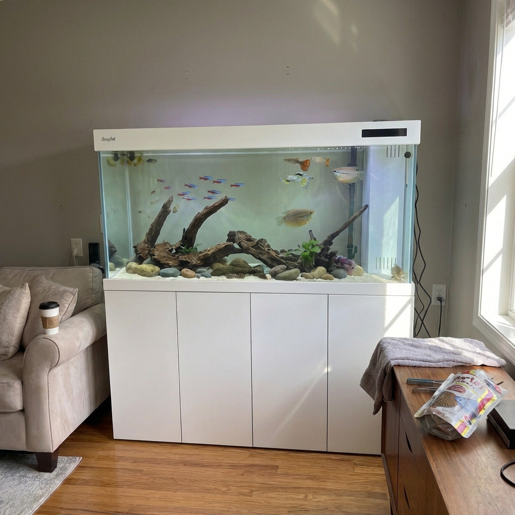 I'm in construction so I notice details and the silicone work on this tank is absolutely perfect. The seams are so clean and uniform—this is hand-crafted quality not assembly line stuff. The mitered edges on the glass are seamless. The cabinet joinery is tight with zero gaps. Whoever builds these really knows what they're doing. The integrated sump was the main reason I bought it and it works flawlessly. Silent overflow tons of room for media and equipment. If you want something that'll last 20+ year this is it. Quick note on customer service: I had a question on a Sunday afternoon and called their line not expecting anyone to pick up. Isaac answered on the second ring